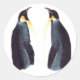 The design on these Round Stickers is an illustration of two Antarctic Emperor Penguins facing each other. The Emperor Penguin is similar to the King penguin. On the Emperor the orange on the face blends into white. On the King penguin the orange is seperated from the white with a strip of black. Hand illustrated using Derwent Water Colour Pencils.