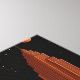 Bathed in burnt sienna and framed against a black, star-strewn sky, this piece distills the city to its purest forms—tower, grid, void, and light. A central skyscraper, sharply outlined, rises with monolithic elegance beneath a copper moon. To the right, a lone human figure stands atop a building, small but not lost, a solitary witness to the silent expanse above.