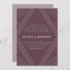 The modern, clean lines of our Empire wedding invitation are a nod to classic art deco styling, updated for a chic geometric look. Your wedding details are displayed in crisp white on an elegant eggplant purple background with thin white decorative line elements. A beautiful choice for fall 2017 weddings in a rich, luxe shade of aubergine.