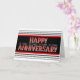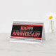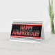 This is a 25 years employee anniversary card featuring the centrally placed text 'HAPPY ANNIVERSARY', written in a 3D effect layered font in red, grey and white and set against a black rectangle with red borders. Above the text there are three grey horizontal stripes going from dark, to mid, to light grey. The same grey horizontal stripes arrangement are also below the text. Between the words 'HAPPY' and 'ANNIVERSARY' is the text '25 YEARS' repeated four times and divided by asterisks. The mid grey stripes above and below the text are also decorated with asterisks.
