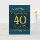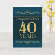 This is an employee 40th anniversary card. The design is formal and elegant and set against a jade coloured background with gold foil effect text and decorative elements.