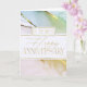 This is a beautiful Employee 5th Anniversary card featuring a soft green, pink and gold alcohol and ink abstract background. The text, 5 YEARS and HAPPY ANNIVERSARY are centrally placed within the design and set against off white text boxes. The font used is gorgeously flowing with a gold foil effect overlay.