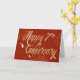 This is a fun Employee Seventh Anniversary Card featuring the text 'Happy 7th Anniversary', written in a swirly font with a digitally added gold foil effect overlay. The text is set against a red background with a feint swirly pattern. In addition, there are three star bursts each of which has a digitally added gold sparkle effect. All in all a fun, bold and celebratory design.