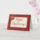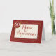 This is an Employee 30 Years Anniversary Card featuring the centrally placed text 'Happy Anniversary' written in burgundy in an attractive font with swirls on some of the letters. The text also has a gold sparkle effect edging to the right and a slight damask texture overlay. The text is on a pale cream coloured text box with a linen effect overlay and burgundy narrow border outline detail. A drop shadow gives the text box a slight 3D effect. On the top left corner of the text box is a digitally created badge with gold sparkle effect wavy border and drop shadow. On the badge is the text '30 YEARS'. Behind the cream text box, is a burgundy border with gold sparkle effect edging and drop shadow. The main background is burgundy with a damask pattern overlay and a few very fine, gold sparkle effect curves and swirls. PLEASE NOTE that all the gold sparkle effects are digitally created. This simple but eye catching design embraces both formal and celebratory elements. © Natalie Kinnear Cards www.greetingcarduniverse.com/nataliekinnearcar This card can also be purchased from my online store with Greeting Card Universe who have printing partners in both the US and the UK: http://www.greetingcarduniverse.com/business/employee-relations/employee-anniversary/years-of-service-specific/greeting-card-1389644?gcu=47771017551