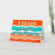 This is a brightly coloured Employee 3rd Anniversary card in red, orange and jade featuring waves of colour and the text, HAPPY ANNIVERSARY in a fun stripy, flowing font. At the top is the text 3 YEARS, in a contrasting, plain, bold font with orange and white patterned detail.