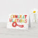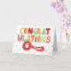 This is a fun and colourful Six Years Business Employee Anniversary card featuring the word 'CONGRATULATIONS' which is in a bold, hand written effect, capital letters font in a celebratory combination of colours. The colours are red, peach, orange, pale green and pale yellow with some decorative gold sparkle effect elements. The word is written horizontally across the design with 'CONGRAT' above 'ULATIONS'.