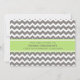 Customisable employee anniversary luncheon party invitations in modern and contemporary dark charcoal grey, bright lime green and white zigzag chevron stripes pattern. Celebrate your staff's many years of service with these unique custom office anniversary lunch invitations.