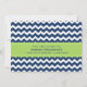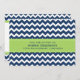 Customisable employee anniversary luncheon party invitations in modern and contemporary dark navy blue, bright lime green and white zigzag chevron stripes pattern. Celebrate your staff's many years of service with these unique custom office anniversary lunch invitations.