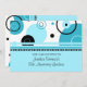 Customisable employee anniversary luncheon party invitations in modern and contemporary blue, black and white circles and polka dots pattern. Celebrate your staff's many years of service with these unique custom office anniversary lunch party invitations.