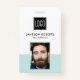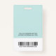 Personalised business company ID badge featuring a pastel teal and white background, a photo of the employee, your company logo, name, barcode and profession.