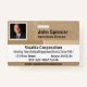 Horizontal Employee ID badge with two shades of beige plus mottled beige background. All elements are changable or removable. Front of Badge Elements include: employee photo, employee name, employee department, company name and tagline. company address, phone number and extension, and email addresses. Back of design also has company info which is all customizable plus social media icons. Also available in vertical orientation. Slot at top for lanyard. All of these elements can be changed or deleted.