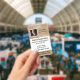 Vertical Employee ID badge with two shades of beige plus mottled beige background. All elements are changeable or removable. Front of Badge Elements include: employee photo, employee name, employee department, company name and tagline. company address, phone number, website and email addresses. Back of design also has company info which is all customisable. Also available in horizontal orientation. Slot at top for lanyard. All of these elements can be changed or deleted.