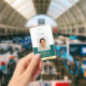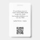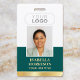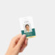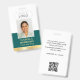 Create a professional appearance with this personalised identification badge. A simple and stylish template with your ID photo, name, job title, company logo, and scannable QR code. All the text can be customised or deleted to suit your business needs. This elegant design would suit many different workplaces and professions, including corporate professionals, retail salespersons, beauty consultants, hotel staff, small businesses, conference name tags and more! Printed colours: teal green and white with a faux gold gradient.