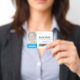 Landscape sky blue essential workers identity ID badge personalize with your employee's photo, name, job role, company logo, company name employee number and a barcode for entry into restricted areas. Lost or other important information on the reverse.