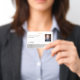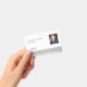 This design offers a placeholder for your logo, ID number, photo, and bar code.