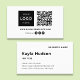 Modern personalised business card features a business logo image, custom QR code, and website on the front with social media follow icons. The back of the card includes the business name, employee, job title, and contact information. Black and white design can be completely customised to suit your style. Choose the customisation option to change the colours, font styles, and more!