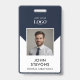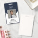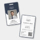 The reverse side of this functional identification card contains essential return information and a large scan ready qr code for seamless digital access control. This professional id badge is ideal for tech companies and marketing firms and corporate networking events where secure verification is required. The vertical layout maintains a clear typographic hierarchy and making the professional title and employee name legible at a glance. Business owners and agency directors purchase this for their staff to ensure professional brand representation and facility security. This product coordinates perfectly with navy blue lanyards and retractable metal badge reels and protective vertical badge holders.