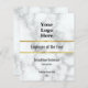 This award has a faux white marble design and a grey display text template. There are lines for the award name (Shown: Employee of the Year), recipient's name, the employee's title, the company name, and the year the award is being presented. All text can be edited or deleted. At the top, there's also a display image you can replace with your company logo. The gold details are an artistic rendering (not foil).