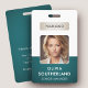 A modern and elegant corporate ID badge designed in a deep green colour palette. Easily customisable with an employee photo, name, job title, company logo, and other business details. The layout features clean typography for a professional and clear appearance, ensuring easy identification. This ID badge is available with options for a lanyard, metal clip, or retractable holder. No minimum order required.