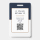 The reverse side of this functional identification card contains essential return information and a large scan ready qr code for digital access control. This professional id badge is well suited for tech companies marketing firms and corporate networking events where secure verification is required. The vertical layout maintains a clear typographic hierarchy that keeps the professional title and employee name legible at a glance. Business owners and agency directors purchase this for their staff to support professional brand representation and controlled facility access. This badge coordinates with navy blue lanyards retractable metal badge reels and protective vertical badge holders.