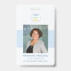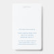 Maintain a clean, modern look for your team with these customisable vertical employee ID badges, featuring a minimalist design with muted grey background with a soft blue strip and modern professional blue sans serif typography. Each badge can be personalised with an employee photo, name, and two additional lines of custom text—ideal for including an ID number, job title, department, or office location. Add your company logo at the top to create a unified, professional brand identity. The reverse side includes an optional custom text field, perfect for return instructions, emergency contact information, or any other important details. Designed for simplicity and functionality, these badges are ideal for businesses, schools, healthcare settings, events, and more—anywhere a polished and secure ID solution is needed. Original design by artist and designer Catherine Sweetman