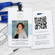 Maintain a clean, modern look for your team with these customisable vertical employee ID qr code badges, featuring a minimalist design with muted grey background with a soft blue strip and modern professional black sans serif typography. Each badge can be personalised with an employee photo, name, and two additional lines of custom text—ideal for including an ID number, job title, department, or office location. Add your company logo at the top to create a unified, professional brand identity. The reverse side includes an optional custom text field, perfect for return instructions, emergency contact information, or any other important details. Designed for simplicity and functionality, these badges are ideal for businesses, schools, healthcare settings, events, and more—anywhere a polished and secure ID solution is needed. Original design by artist and designer Catherine Sweetman