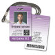 Purple and White - A modern business design that highlights your office logos and employee name. This trendy office design also includes a badge ID number, expiration date and nurse or or other title.