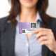 A modern business design that highlights your office logo and employee name. This trendy small business design also includes a badge ID number, expiration date and large area for nurse, essential or any position.