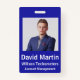Customise your employee's Photo ID badges. All details can be modified or removed. Photo, name, company, department/division. Crisp white text on royal blue background. Every detail can be customised, including colours and fonts. Spot for barcode on reverse of badge, if needed. If not, can be deleted.