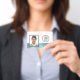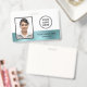 Simple, elegant and chic employee photo ID badge with a blue faux metallic strip. Customise the front with your logo, employee photo name and job title. On the reverse, add your company name and other information.