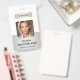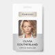 A modern and elegant corporate ID badge designed in a silver colour palette. Easily customisable with an employee photo, name, job title, company logo, QR Code and other business details. The layout features clean typography for a professional and clear appearance, ensuring easy identification. This ID badge is available with options for a lanyard, metal clip, or retractable holder. No minimum order required.