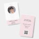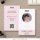 Elevate your company's professional image with a sleek Employee QR Code Blush Pink ID Badge in a simple blush pink and grey design. Customise it with employee photo, company logo, QR code, business details, and job titles for a polished look.