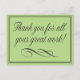Thank you for all your great work employee appreciation card with elegant script and ornament. Change the background colour if you like. Recognise your employees for their good work with a special thanks from management to staff or teacher to student.