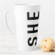 Start your day with a burst of positivity and self-assurance with our "Empowering Affirmations for Her Latte Mug." Featuring the bold and striking word "SHE" on the left, this design is complemented by a series of uplifting affirmations in vibrant red text: "SHE IS CONFIDENT," "IS STRONG," "IS MOTIVATED," "IS BLESSED," "IS HAPPY," "IS BEAUTIFUL," and "IS ENOUGH." Each sip from this mug serves as a reminder of your strength, beauty, and worth, making it the perfect companion for your morning coffee or tea ritual. Embrace the power within you and inspire others with this motivational latte mug.