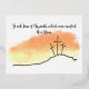 Easter postcard with watercolor hill with empty foil crosses against a dawn sky with scripture about Jesus being Risen. New!