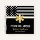 This design features an EMS and EMT flag with black and white stripes, and a thin white line stripe as well. Customise with the name of the retiring or graduating emergency medical service provider. A great way to say congratulations to the new retiree or graduate for their retirement or graduation.