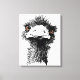 A delightful pen and ink rendering of an emu head on with only the eyes coloured in bright golds. The face of this emu will bring a smile to anyone.