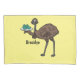 This funny emu has green eggs! Drawn in happy cartoon style.