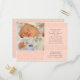 "Encaustic" pink baptism invitation. Personalise this postcard template with your baby's photo and baptism or christening service and reception details for a unique invitation!