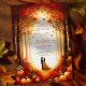 This elegant wedding invitation captures the essence of an autumn romance. The card showcases a serene path lined with towering trees, their leaves painted in the warm hues of fall, transitioning from green to a symphony of amber, orange, and red. The trees form a natural archway, leading to a soft glow at the end of the aisle, hinting at the bright future ahead for the couple. At the base of this path, a bride and groom stand hand in hand, enveloped in a tranquil light, symbolising their union. Surrounding pumpkins along the aisle add a touch of seasonal charm, perfect for a fall wedding theme. This invitation is ideal for couples who wish to announce their special day with a blend of elegance and the cosy, inviting atmosphere of autumn.