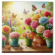 Step into a magical garden with this lively design, showcasing a vibrant array of potted plants and flowers. With fluttering butterflies dancing above and a glowing backdrop, this piece radiates whimsy and joy, perfect for adding a playful, enchanting touch to any space.