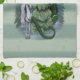 Dragon and Unicorn decorate a Christmas Tree! Fantastical kitchen towel for Christmas! Art Copyright to Erin Cooper
