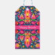 The gift tag is a small yet exquisite piece of art, inspired by the vibrant and intricate patterns of Guatemalan murals, seamlessly combined with traditional Diwali elements. The tag's shape is a classic rectangle with rounded edges, providing a balanced canvas for the design.