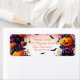 This vibrant Halloween-themed illustration features pumpkins, bats and flowers.