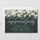 Our elegant engagement party invitations in chic hunter green and white feature a top border of champagne-hued bokeh lights, with "engagement party" in chic calligraphy script typography. Personalise with your engagement celebration details beneath in white. A chic design in dark forest green and white for modern couples and elegant events.