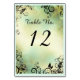 Wedding reception table cards in a romantic watercolor mist of blues, greens and cream with a black leafy swirly border. Mirrored double sided design all formatted and ready for your to edit with your own table numbers in the easy Zazzle text editor. Just edit, add to the cart and repeat as needed for each table number. Matches the Enchanted Evening Glow wedding Invitation and other items in this same design at MonogramsandMonikers on Zazzle.