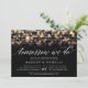 Our elegant rehearsal dinner or cocktail party invitations in feature a rich black background and strings of golden lights with a glowy bokeh effect. "Tomorrow we do" appears in chic calligraphy script typography. Personalise with your ceremony rehearsal and rehearsal dinner details beneath. Includes space for the rehearsal timing and church or venue address.