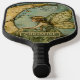 An enchanted magical forest fairy pickle ball paddle for those who love fantasy themes, with your name in a decorative typography. gold and green hues.
