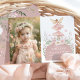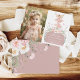 This delightful invitation features a charming fairy standing gracefully on a pink mushroom, surrounded by lush, delicate flowers and greenery. The soft colour scheme of pink and white creates a whimsical and dreamy atmosphere, perfect for your baby's special day.