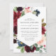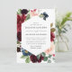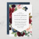 Elegant floral wedding invitation displays your wedding details surrounded by a frame of rich burgundy, blush pink, and navy blue watercolor flowers and lush green foliage. The reverse side of the invites features an optional navy blue watercolor background.